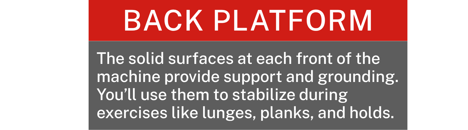 The solid surfaces at each end of the machine provide support and grounding. You’ll use them to stabilize during exercises like lunges, planks, and holds.